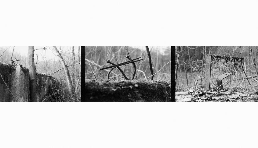 In the field of pictorial representation, Heimrad Bäcker recasts this approach as “documentary photography.” From the late 1960s, he has photographed topographic traces of the Nazi killing machine, primarily at the former Mauthausen and Gusen concentration camps. The motifs of these photographic works, often realized as sequences of images, are not the canonized symbols of the Shoah that have emerged from an iconography of genocide since the end of the war. Instead, the photographer’s isolating gaze falls on apparently trivial topographic and architectural traces or on media documentation of the Shoah and related trials on television. But even in his treatment of a familiar motif like the “Todesstiege” (a notorious stone stairway connecting the camp with its granite quarry, the site of many accidents and murders), Bäcker keeps his distance from the usual codes of consternation by his use of increasing abstraction. T.E., G.K.