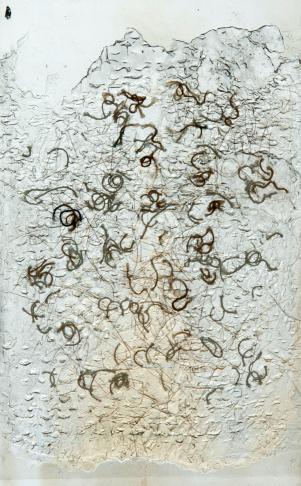 Běla Kolářová’s early work was in the photographic medium. She began working with photographs in 1957, but her documents of everyday life and imaginative city fragments were soon replaced by photographic experiments. She expanded her experimental work by the artificial negative in 1961, thereby internalizing the collapse of a traditional medium in recognition of the limits of classic photography. Kolářová’s husband, Jiří Kolář, was simultaneously facing a similar situation—and in the early 1960’s, this was in fact the leitmotif of Western culture, where a mistrust in visual value was tending towards the full negation of material works. Kolářová’s experiment with printing banalities is linked to the early dada discovery of rubbish and the commonplace. But while the Dadaists tried to eliminate aesthetic aspects and the intentional nature of choice from their work entirely, Běla Kolářová made deliberate selections. She put together what amounted more or less to an atlas of prints, focused on her closest, most intimately known surroundings and bursting with allegories and metaphors. The artificial negative is a transparent print of her attentive perception, while the positive converts the subtle print into an expressive graphic feature. The author forgoes the story or the big theme; her reality is sufficiently real to rank her among the initial Neo-Dadaists – the new French realists. Though she did not actually state an intent to fight against the compromised reality of the official ideological doctrine in this way, her detailed manipulation of objects and the experience of touch actually did stand in direct opposition to untruth. It is a declaration of genuine reality in which, however, the experience of proximity also takes on a spiritual dimension. M.Kl.