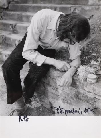 This extreme performance was conducted with Jan Mlčoch’s assistance in a deserted home on Kosárkovo Embankment. He stuck a twig into his right forearm and left it the whole afternoon joined with his body, until he ended up in the emergency room with blood poisoning. Nature was for Štembera at this time a symbol of the external world.