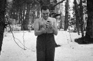 The photo series “Showing Elle” depicts an action of the artist, who stands half-naked in the snow while showing his friends glamorous images of beauties from the magazine "Elle." B.S.
