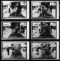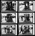 Tibor Hajas’ "Fate Performance" can be viewed as a photographic study from the set to his short film “Self Fashion Show,” where the protagonists—everyday people from the city—pose with different utensils and clothes, pretending to be stars in front of the camera for a short while and thereby escaping the harsh reality of life in János Kádár’s communist Hungary of the 1970s. Whether a family with children, an old lady leaning on a cane, an athletic guy with a cigarette in his mouth, a women carrying a shopping bag, or just a casual passer-by, they all feel the glamor of posing on a stage and forget their everyday routines. Although this was a street action, the black backdrop suggests an elegant ambience and directs the gaze away from city life by forming an open-air studio platform. Whereas the film shows the people in static poses, the photographs give insight into its making, with assistants huddling around the platform to make subjects feel at ease and present themselves in the properly against the backdrop. W.S.