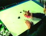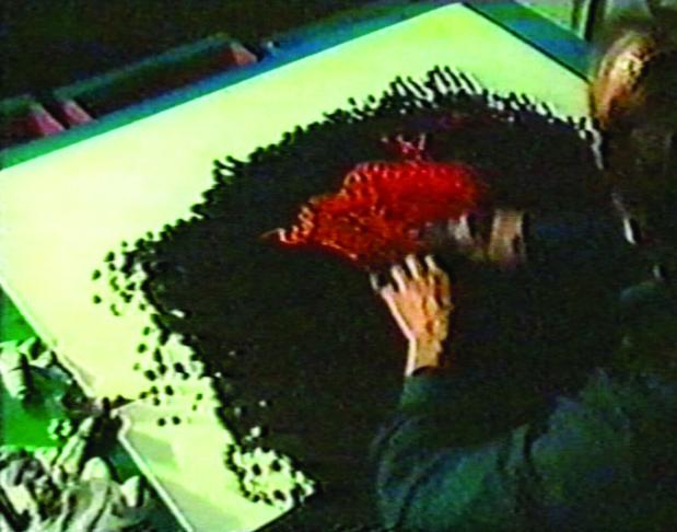 The video work “Rhythm” reflects the process of painting. It is shot with a static camera, and shows Neša Paripović putting layers of paint on a white surface by drumming his fingers on the surface. This gradually creates an “abstract painting” consisting of several blots, and finally a thick amorphous surface. Referring to Pollock’s action painting, the artist emphasizes repetition and monotony in opposition to a dynamic gesture that comes out of the movement of the whole body. Hence, the artist positions himself analytically and critically while appropriating ironic distance in relation to paradigms of modernist painting. At the same time, by using a different medium, Paripović adds something which is immanent to the painting and yet invisible in the final product: rhythm, sound and time. B.S.