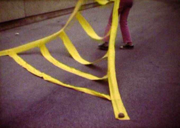 The film works of Hans Scheirl revolve around the issues of gender performance in public space and how the individual adapts to the generic structures of everyday environments. The film “Street Images” starts with the gauging of the grid of a sewer grate. Feet slowly move about the edges of the grid but do not identify the sex of the person involved. A little later, a woman walks around in plastic shoes looking like stones tied around the legs. Plastic strips mimic the dashed center line of a street but soon turn into a line winding like a fashion accessory around the body. The protagonist of the video coils up these connected plastic strips on the ground and gets entangled in a mesh of bodily confinements. Here, a referential approach to body art from the 1970s becomes apparent and especially to the “Body Configurations” by VALIE EXPORT from the beginnings of that decade. The explicit application of fashion tools, however, signifies the end of that decade and the influences of punk, which reached its peak at the beginning of the 1980s with a crossover of fashion, sex and gender. W.S.