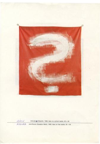In 1965, Július Koller introduced his “Anti-happening” series and soon turned it into a permanent process of demystifying the institution of socialist culture. His dialectical language games, which he distributed as notices—text cards with stamped letters—were disseminated via the mail. In the 1970s, postal communication replaced the gallery space and effectively reached a wide spectrum of addressees worldwide. The use of anagrams and conceptual garblings makes room for the linguistic expression of notions from popular culture and the science-fiction sphere. The games, involving verbal mechanisms of denial and identification, make use of a tautological shift of positional demarcation and self-identification. Dialectical linguistic operations confront the field of subjective activities with the field of objective and real facts. Koller created these in the spirit of dialectical materialism to debunk the false consciousness and to demystify the social hypocrisy of socialist Czechoslovakia. D.G.