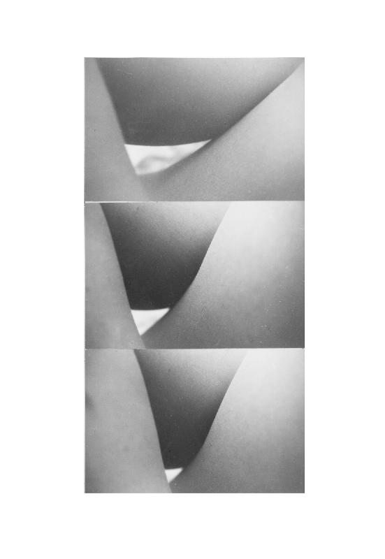 In Friederike Pezold’s work, fragments of the body appear in multiple photographic “cutouts” and video segments arranged in terms of the female physique. For the photographic versions of her video-derived body-images, Pezold arranged two or three different frames printed on photo paper and mounted them on white paper in either vertical or horizontal arrangements. The serial images in a given piece differ from each other, some more and some less, in a way that refers to the filmic, time-based procedure of their making. A highly interesting aspect of these montages lies precisely in the temporal and spatial gaps that become visible, with a fragmented body doubling back on an ever-fragmented gaze. S.E.