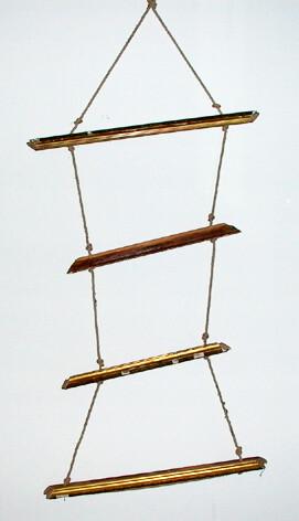 - hanging ladder; broken frames (wood, plaster, paint), rope