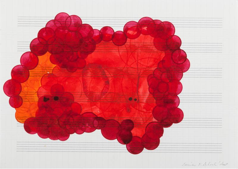 The creation of art as such is an essential element of Denisa Lehocká’s existence, which she characterizes as “breathing”. Drawing is a fundamental and, one might say, automatic activity of hers. She produces drawings not as artifactual commodities but rather as side effects, spontaneous byproducts of that ongoing “breathing”. There is no division between preparatory (for larger works, complex installations, etc.) and final (standalone). So instead of “being”, her drawings are honest domains of permanent and infinite “becoming”. Her semi-abstract drawings are processual mirrorings of neurological (somatic) and existential (psychic and mental) corpuscles intertwined in the context of certain overall poetics. She uses traditional materials such as sketchbooks, pencils, inks, and acrylic paints. She penetrates, perforates, and embroiders sheets of paper in the formats of A5, A4, A3 and A2. Her drawings amount to both collages and small paintings. B.O.
