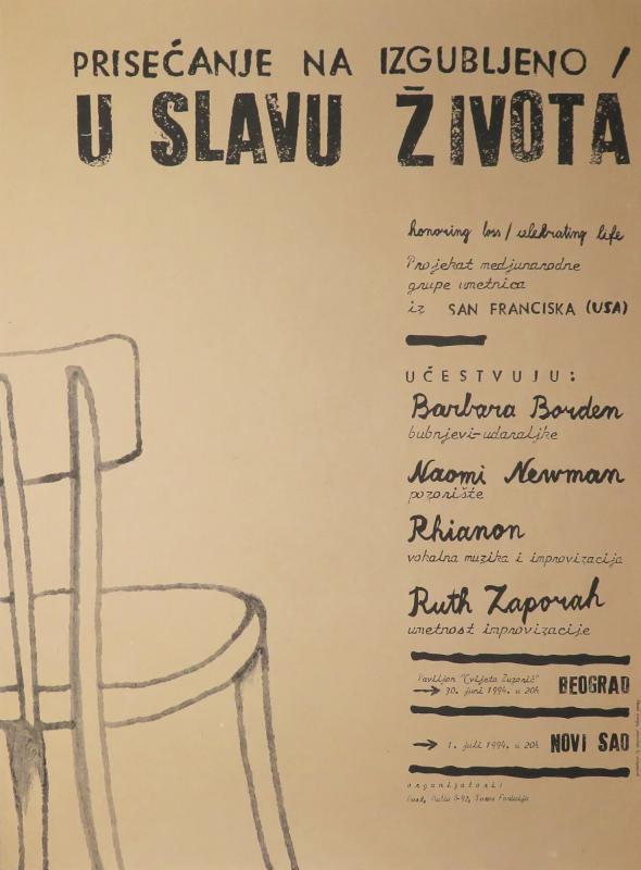 The systematic activity of ŠKART was to design, print, and put up small-edition posters in various locations around Belgrade, actions that were accompanied by brief announcements in the programming of the independent radio station B-92. ŠKART NEWS consisted mostly of short propositions, or even just of a single word. For example, the word “loš” (“bad”) was uttered on the air whilst a poster with that very word was put up in some public place. Their posters also included a series dedicated to idiosyncratic individuals who had not adapted to their immediate or broader social environments. A friend who decided not to attend a school graduation and decided to “graduate alone”, or similar personal stories about “small gestures” of rejecting dominant routines and discourses and instead finding alternatives. They also produced posters informing the public about “small heroes” of civil society who found themselves put under pressure by authorities: radio presenters cut off from broadcasting, newspaper sellers accused of distributing independent journals, etc. B.D.