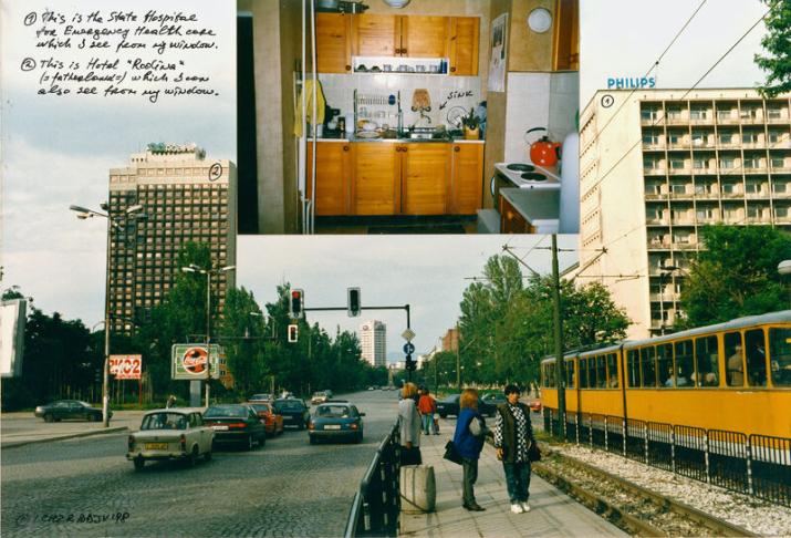 “Home / Town” is about reclaiming “my” city. In 1998 I found out that a location in Sofia had different meanings for people of different professions. That which I thought of as the square in front of the National Art Gallery turned out to be the square in front of the National Bank for a businesswoman employed by an investment company. Neither of us was aware of the other’s mapping. Before 1989, all of us thought of it as the square in front of the George Dimitrov Mausoleum, the city’s most symbolically loaded location. I began collaging photographs of my apartment onto old photographs of outdoor locations in the center of Sofia. The interface of the city was free of advertisements, so the photos of my home look like billboards. In these collages, Sofia looks like it did before 1989. Five years later, however, the public space of Sofia had already been invaded by neon corporate logos, huge billboards and the glossy facades of corporate headquarters. The images from my private space were “replaced” in reality by the images of private interests, raping the public space of neo-capitalist Sofia. L.B.