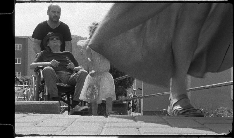 Customers meet to take coffee and cake in a pastry shop, which is situated in the shadow of a social housing estate. Scooters and prams are parked by the door, and people from all generations gradually take their seats on a Friday afternoon at five tables arranged in a neat row before impressive big windows. J.D.