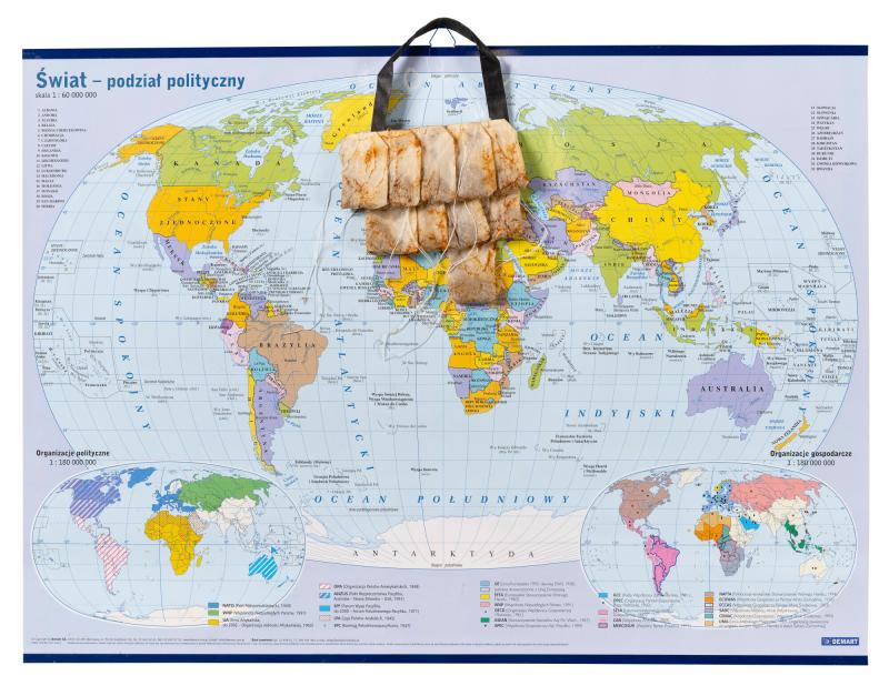 Cezary Bodzianowski’s work with teabags dates back to the early 1990s, when the artist studied in Antwerp. At that time, he used teabags to stage constructions reminiscent of dominos ready to fall over. 2011 then saw Bodzianowski produce an exhibition at a former tea storage building in Bristol’s Spike Island district. He made a costume in the form of an enlarged teabag and shot a video in which he was shown wearing it in the city’s public spaces. The artist also used the teabag as one of a series of surreal objects connected with other aspects of everyday life. This particular object is associated with afternoon tea rituals as moments to take a break and relax. While tea prepared in a glass is likewise among the attributes of any office in Poland, the teabag is also a metaphor for the activities pursued by the artist himself—suspended in the everyday, which is thus lent color and taste. In the process, however, the teabag becomes a useless byproduct of preparing the brew. This metaphor is elaborated upon in one of the artist’s poems: “The artist, in creating art, involuntarily becomes the essence of art itself, drawing from it and from himself, pursuing it and himself, escaping from it and from himself by creating with his whole self until he dissolves into the boundless ocean of art.”