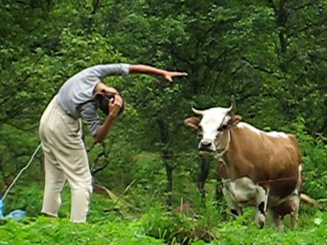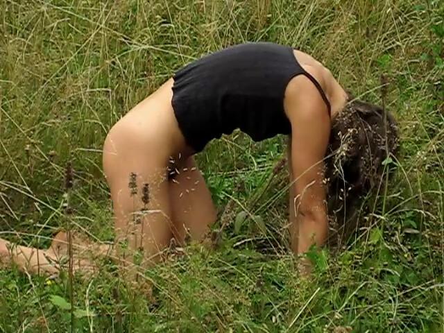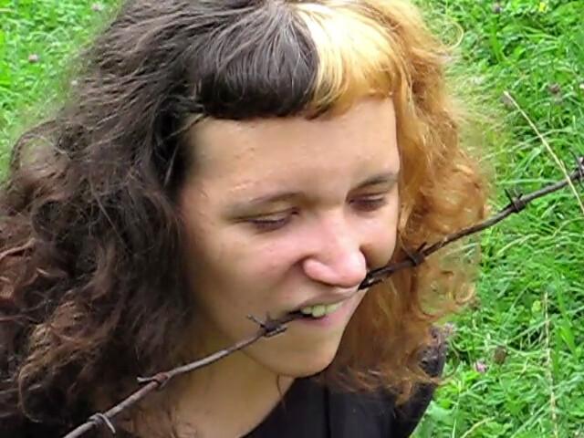 Dana Kavelina’s film “Animals Have No Fate” was made in collaboration with Olha Marusyn and exists in two versions, each from the perspective of one of the two artists. This work is based on the eponymous thesis advanced by Zhenya Belorusets. Kavelina’s version can be regarded as the main one and is five minutes longer. While her version is divided into 14 consecutive chapters, Marusyn starts with number 15 and then uses random numbers such as 3 or 128. She chooses sequences that are also part of Kavelina’s version. These sequences portray feral as well as domesticized conditions at the threshold between animal and human, hinting at a post-human future. Alongside shots showing animals in pastures, the human performers are shown interacting with all kinds of props and prostheses in a natural setting. Whether dressed or naked, the male and female performers use these items for animalistic actions that all exhibit some kind of cruelty. In one scene, Kavelina performs jumping jacks with a cigarette in her mouth and knives that are attached to her face but then fall to the ground. Overall, the film questions an era characterized by environmental emergencies, biopolitics, and accelerating technological progress. W.S.