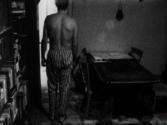 Ion Grigorescu’s film “Our House” centers on the artist’s home and family life and the daily chores that this living situation requires. Shot in black and white with stark contrasts, the film analyzes different parts of the apartment via close-ups of its walls and corridors, starting with the artist leaving the bedroom while his wife is still asleep. As in many of his other films, Grigorescu himself features as the main protagonist, dealing with various objects and with the mirror as an essential prop. With a naked torso, he walks into the kitchen to eat a piece of bread and later on proceeds into the bathroom to take a shower. In between, the camera focuses on a chair and stool and takes a glimpse at Grigorescu behind the camera in the mirror. In the second part of the film, images and film sequences overlap and are superimposed, showing the family at the table and the artist while repairing his film camera. Hence, the filmic apparatus as a meta-reference comes to be of central importance as the tool facilitating Grigorescu’s observations in and around his home. W.S.